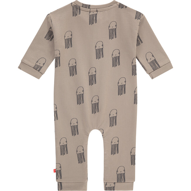 Long Sleeve All-Over Octopus Graphic Print Buttoned Romper, Taupe