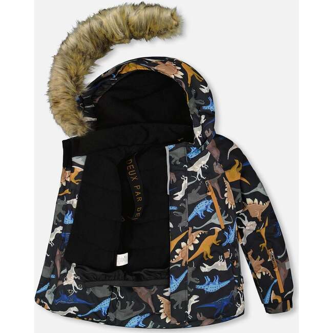 Two-Piece Play Snowsuit with Printed Dinosaurs Jacket, Navy Blue