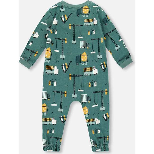 One-Piece Organic Cotton Pajama, Teal Construction Print