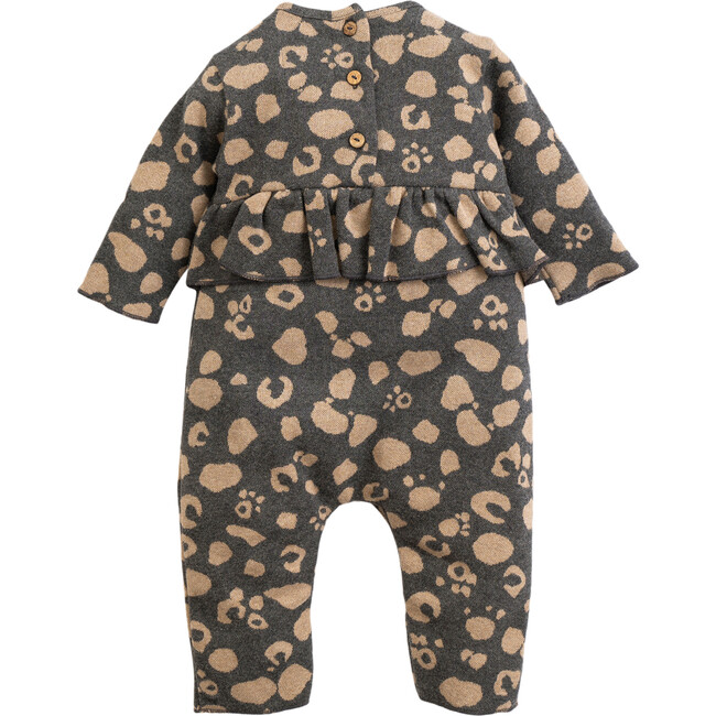 Spotted Ruffle Jumpsuit, Black and Brown