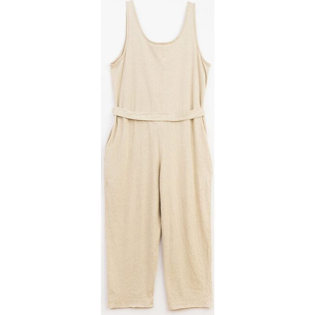 Women's 2-Buttoned Neck Tie-Waist Jumpsuit, Beige