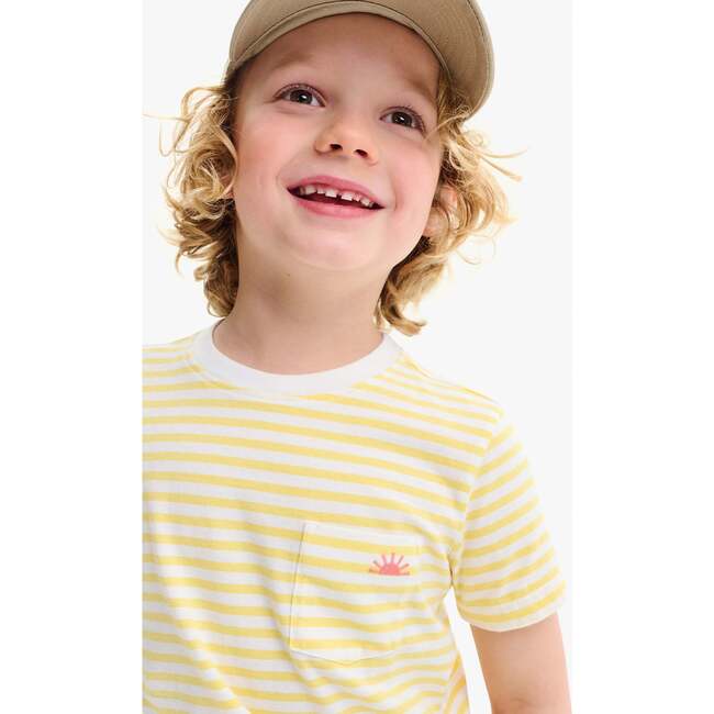 Kids Embroidered Pocket Tee In Stripe, Sunlight White Stripe