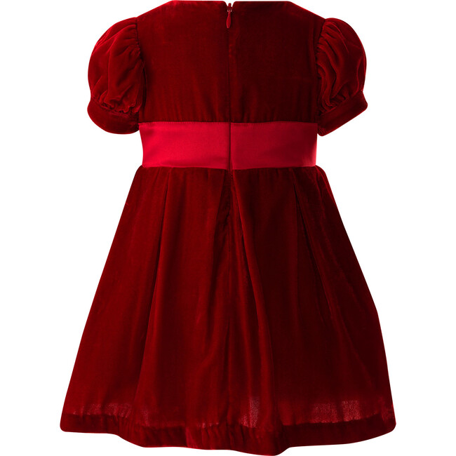 Baby Crushed Velvet Bow Ribbon Tie Short Puff Sleeve Dress, Red