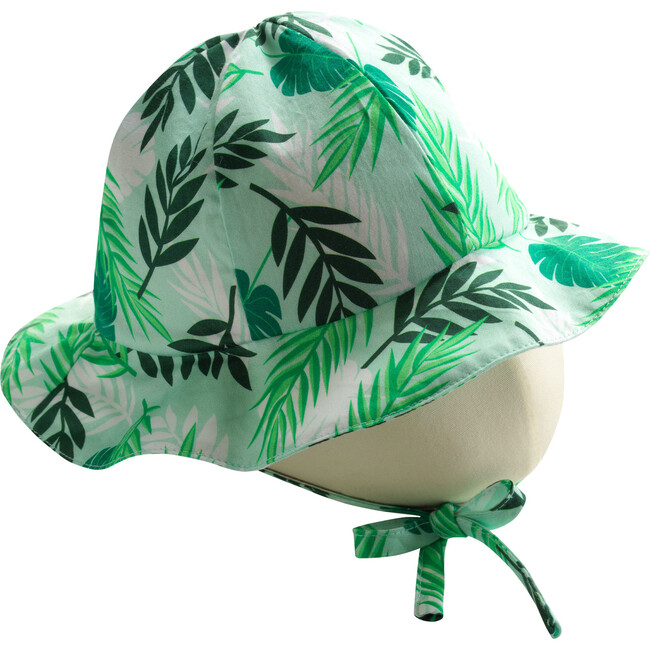 Girls Palm Tree Print Cotton Sun Hat, GreenGirls Palm Tree Print Cotton Sun Hat, Green