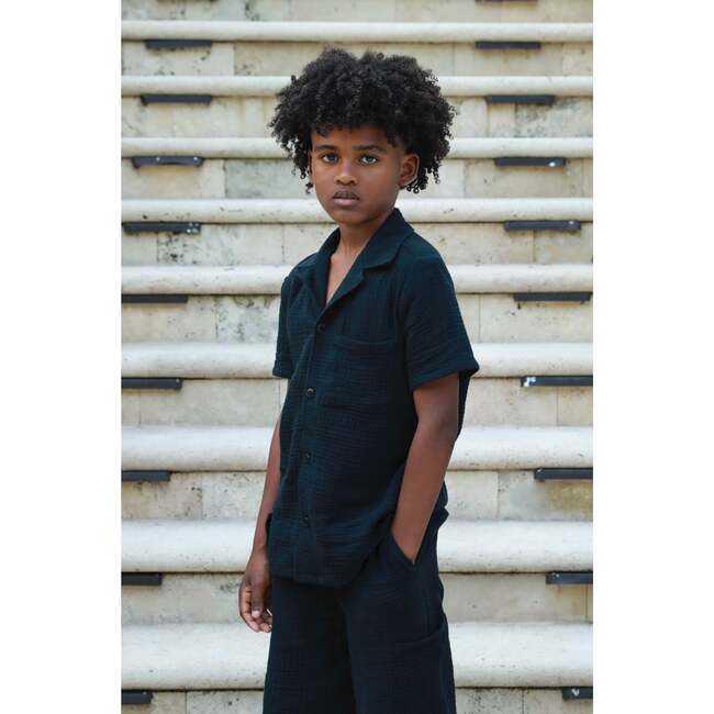 Organic Cotton Camp Collar Waffle Shirt, Black
