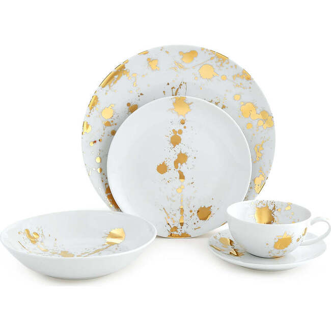 Artfully Irreverent. Named for the temperature at which gold melts, our 1948 collection features classic porcelain dinner and serveware splattered with real gold-the perfect balance of timeless and today, formal and fresh, uptown and downtown. Dinner plates wow with a generous scale, friendly coupe shape, and an all-over splatter pattern, while coordinating pieces are embellished with bold compositions. Formal enough for a fabulous fte, yet hardworking for everyday luxury.