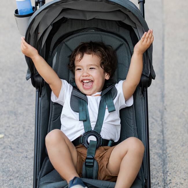 Lifetime Warranty Rain Cover & travel bag included Lightweight at 13.4lbs. One handed quick fold with automatic transport lock Patent pending comfort seat provides optimal support in all recline positions Travel friendly compact size suitable for overhead bins (we recommend checking with airlines prior). Elastic carry strap to comfortably fit parents of all sizes Tall backrest Adjustable harness with 5-point safety buckle UPF 50+ canopy and peek-a-boo window Seat back pocket for your convenience Large shopping basket High leatherette handlebar suitable for even the tallest parents Easy access, one touch flip flop proof brake 4-wheel suspension Suitable for children 6 months 50 lbs.