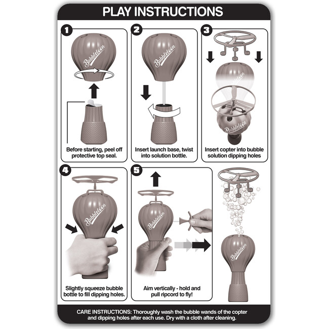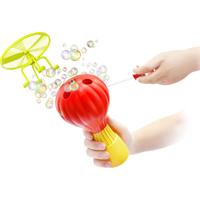 LANARD: BUBBLE CLUB BUBBLELOON 3 PACK BUNDLE - The Bubble Club Bubbleloon is a fun innovative way to play with bubbles! It’s a high-flying bubble bonanza! Squeeze the bubble solution container to auto fill the bubble liquid into the launch reservoir, pull the launch cord to watch the bubble copter launch into the sky leaving a stream of bubbles behind! Endless bubble fun!! The set contains 3 Bubbleloon toys that include an air balloon basket styled bottle filled with 4 fluid ounces of bubble solution, air balloon launcher with rip cord and bubble copter. For children aged 3 and up. Look for other innovative Bubble Club toys from Lanard.