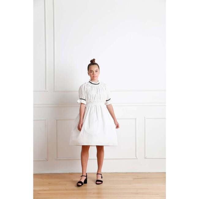 Midi length (please refer to the sizing charts below for measurements). Puffed trumpet sleeves. Fit Info: Fits true to size for the respective age group. For example, Aisabobo size 8 is designed to fit well for an average 8-year-old girl in terms of height, chest, and waist measurements in her age group. This size may also suit a smaller 9-year-old girl or a taller 7-year-old girl. Similarly, Aisabobo size 9 may fit a smaller 10-year-old girl or a taller 8-year-old girl. Models in the pictures are slightly taller than average in their age group. Lined. This style features smocked neck and waistline with black contrast trim. Beautiful pleated A-line silhouette skirt. Concealed hook and zip fastenings along back. Smocked waistline provides a better fit and extra room to stretch.