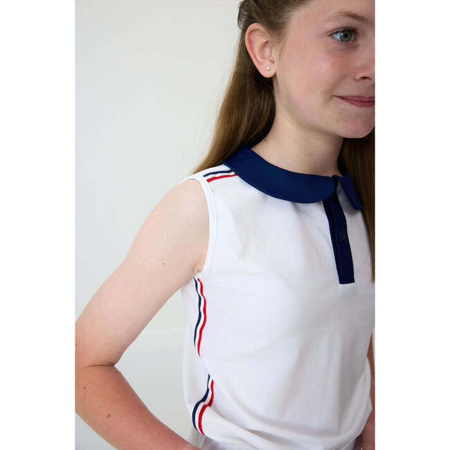 Introducing our girls' active tank with a twist the perfect fusion of sporty chic and playful elegance. Crafted for the active young lady who embraces both style and performance, this top is designed to seamlessly transition from the courts to casual hangouts with friends to dinner at the club.