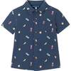 Kids Fruit Print Knit Buttondown, Navy Blue