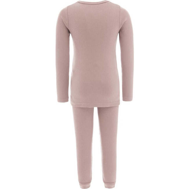 Pink mauve gender neutral long sleeve outfit sets for kids and babies from BANBLU, featuring a long sleeve pink top and matching pants.