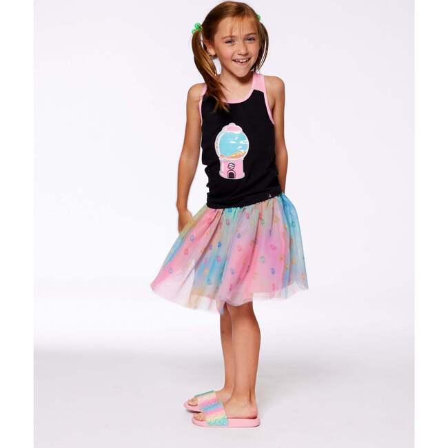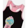 Sporty meets sweet in our Organic Cotton Racerback Tank Top Black and Candy Machine. Perfect for any day of play, this two-tone tank features wide straps, a contrast racerback, a scoop neckline, and contrast binding. A gumball machine print on the ch