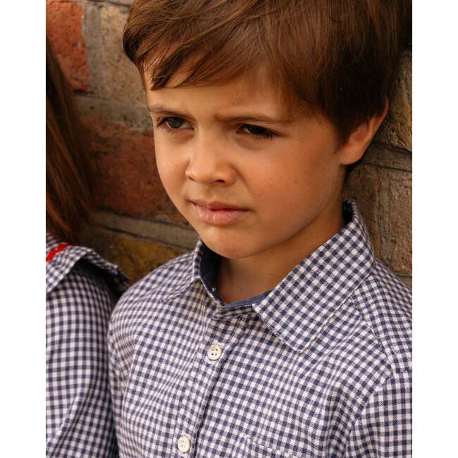 Refine your son’s wardrobe with our Ralph Shirt in elegant camel and blue check cotton. Featuring a classic collar and mother-of-pearl button placket, this long-sleeved essential blends timeless charm with polished sophistication.