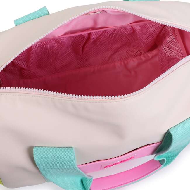 This pink retro de sac bowling bag features a classic, structured silhouette with a vibrant pop of color, adding a stylish and nostalgic touch to any outfit.