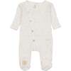 Crafted with lightweight pointelle cotton, this cozy wrap footie is scattered with a delicate berry print. A thin ribbon trim and decorative buttons add the perfect finishing touches.