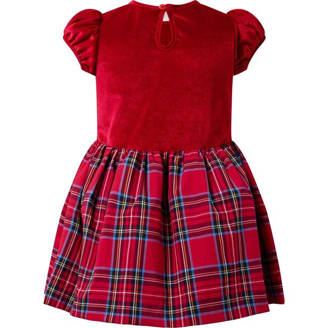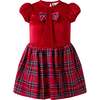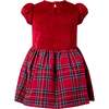 New! Get party ready with our stunning Velvet Check Party Dress! Made with rich red velvet fabric, this dress features a fitted bodice with short puff sleeves and a sweet tartan bow detail on the chest. The red tartan gathered skirt adds the perfect touch of festive charm. Perfect for any special occasion, this dress is sure to put your little girl in a playful and festive mood.