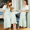 Introducing the Women’s Marina Dress! Featuring a feminine tiered silhouette, romantic puff sleeves and bows that make this dress a must have this spring season. Dress up with a heel or dress it down with a sneaker for playful weekends, this dress is perfect for every occasion. This dress matches back to the girls Paloma Dress, the Baby Nami Dress, the Baby Mathias Overall & Syd bodysuit Set and the Boys Finn Collarless button down shirt for the perfect family matching moment this spring.